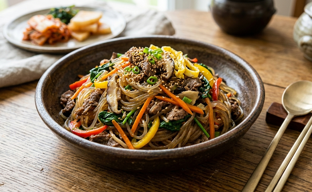 자주 올라오는 요리입니다. 당면의 쫄깃한 식감과 다양한 채소, 고기의 풍미가 어우러져 많은 사람들이 좋아하는 음식입니다.