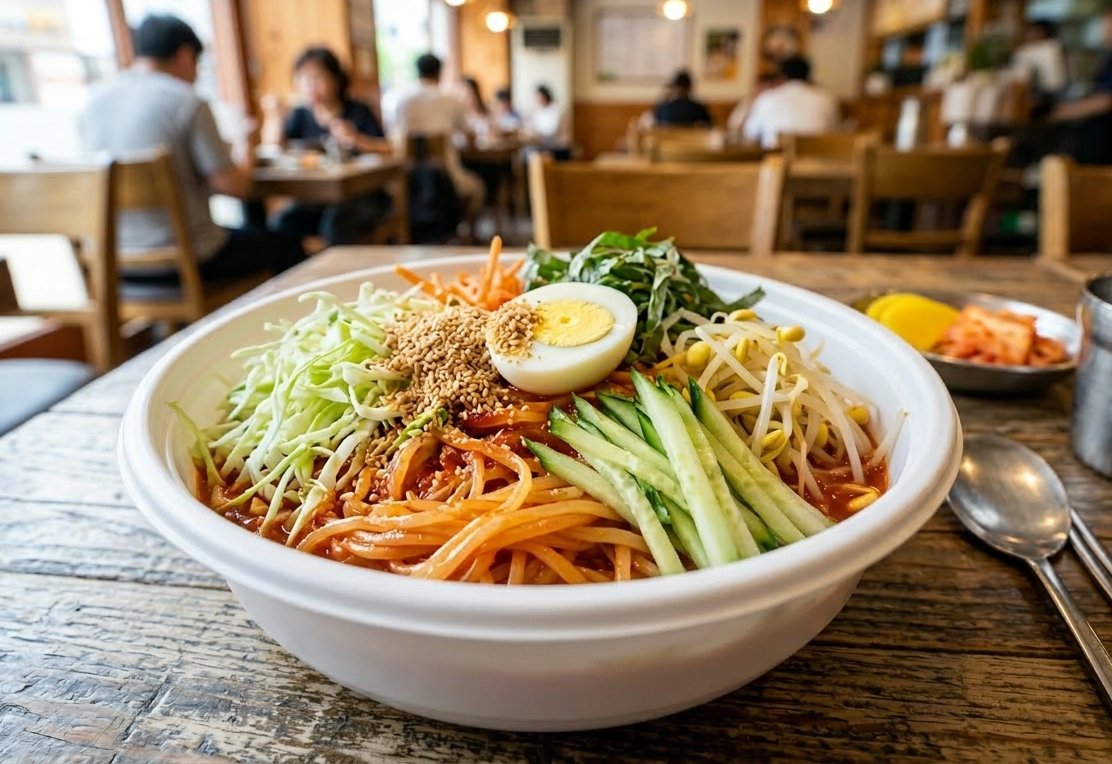 아삭한 채소와 매콤한 양념, 그리고 쫄깃한 면이 어우러져 독특한 맛과 식감을 만들어 냅니다.